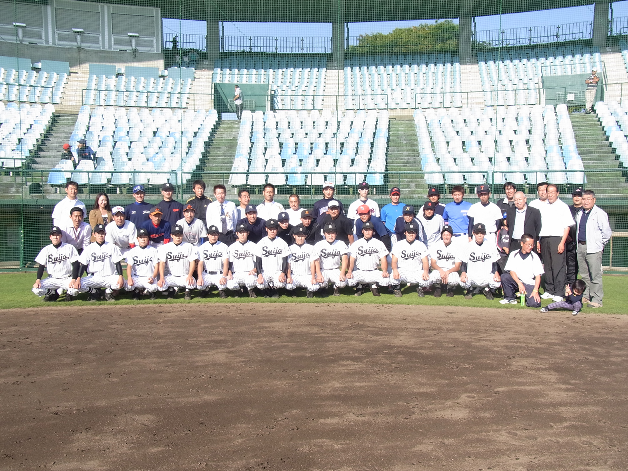 地元の企業の軟式野球で現役で頑張っているOBがたくさんいましたね。わかっている範囲ですが、井坂君、潮田君(筑波銀行)森君(筑波病院)木村君(凸版印刷)園田君(ケンシン)鈴木君、庄司君、横須賀君(水戸市役所)など、その他たくさんのOBが野球をしながら仕事?^^仕事をしながら野球を楽しんでいます。なかには監督まで務めたOBもいます。現在は上がったかもしれませんが、東北パイオニア(山形)で小室君が監督をしていましたね。