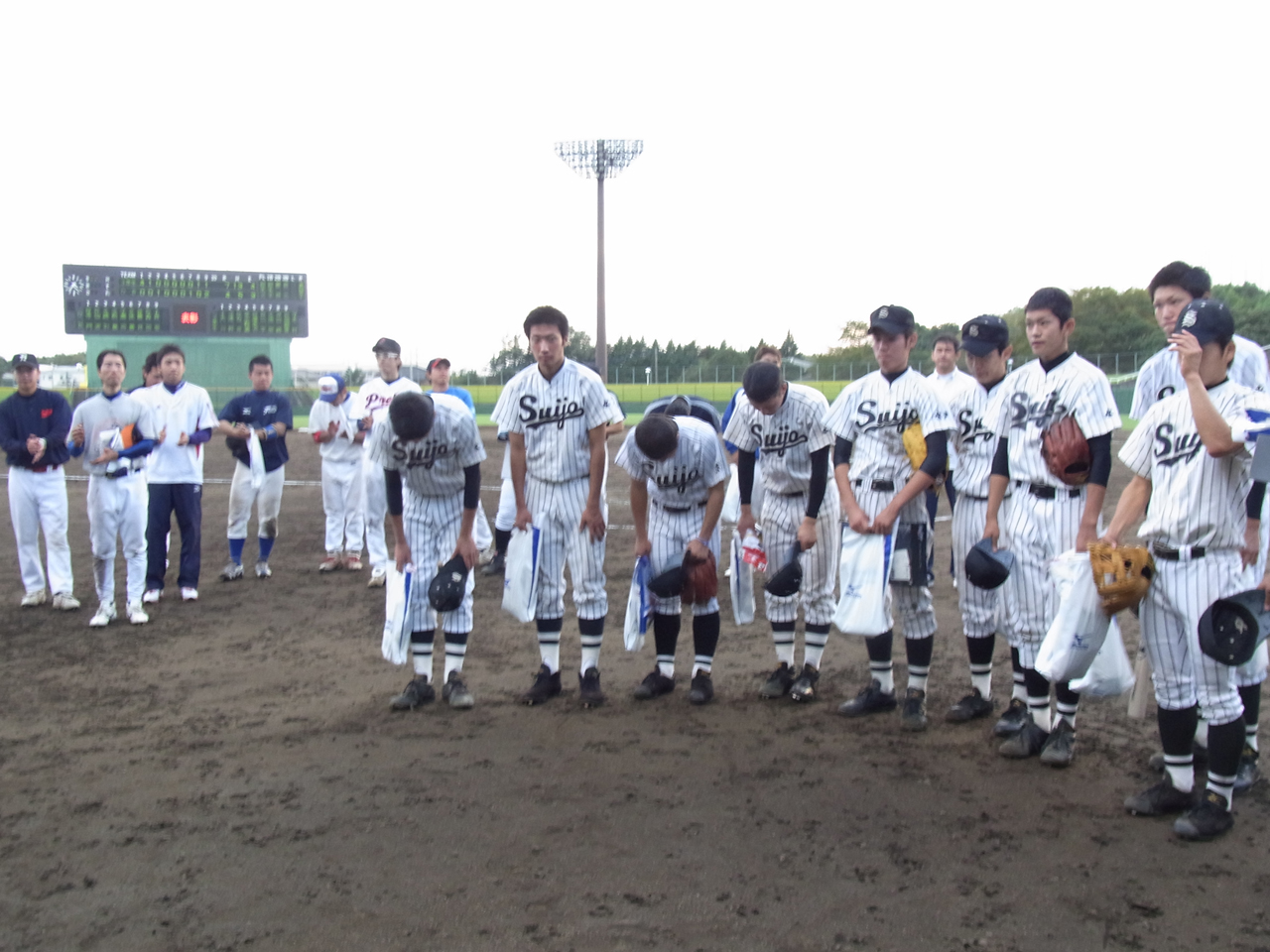 16日のOB戦に多くの皆様に参加していただき、ありがとうございました。OB会役員一同心より御礼申し上げます。また協力していただいた橋本監督、関根部長、猪狩コーチ、そして3年生の皆様、父母会、硬式野球部後援会の皆様ありがとうございました。皆様がたの協力のおかげで、怪我もなく楽しい1日が過ごせました。3年生達はこれからの新しい目標に向かって頑張ってほしいと思っております。また、参加はできなかったけど、仕事の合間に来てくれたOBの皆様、ありがとう。最後に今回球場の手配等陰で大変な思いをした(?)水戸市スポーツ振興協会の清水君(26回卒)綿引君(36回卒)、景品を提供してくれたグランドスポーツの五十嵐さん(17回卒)、広報を担当してくれた永谷君(15回卒)皆様ありがとうございました。