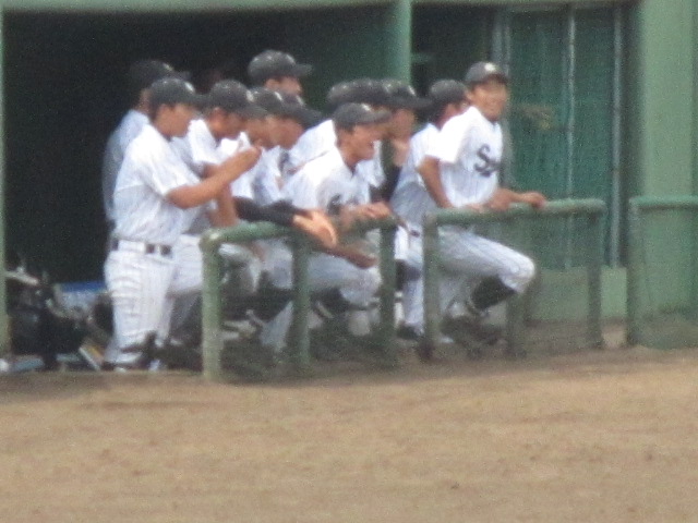 ベンチの様子です。今日は内野席が満員だったので久しぶりに外野芝生席から観戦しました。本日土浦まで応援に来てくれたOBの皆様ありがとうございました。次はひたちなかなので多くのOBの皆様の応援を期待しております。